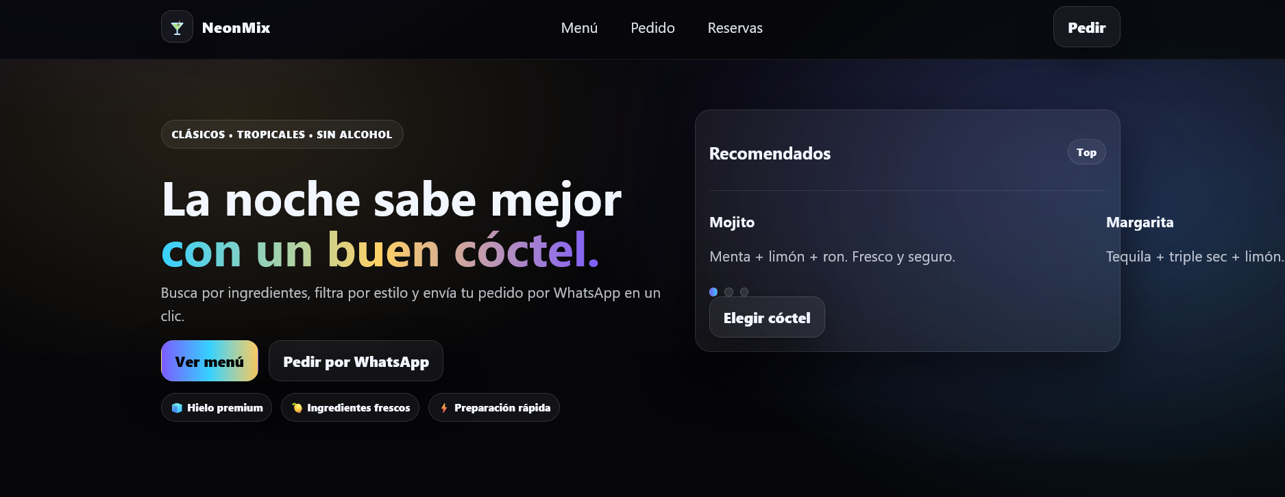 Sitio web profesional diseñado específicamente para emprendedores que inician su negocio de cócteles.