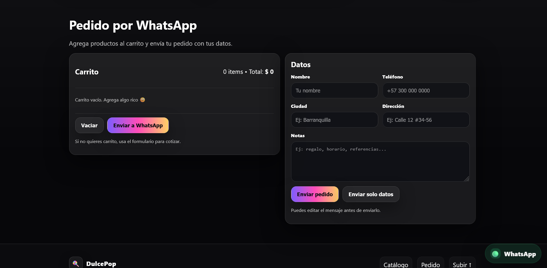 Esta solución integral incluye formulario de contacto para captar clientes potenciales, integración directa con WhatsApp para comunicación inmediata, y diseño completamente responsive que se adapta perfectamente a dispositivos móviles, tablets y computadoras de escritorio. Ideal para emprendedores que desean establecer su presencia en línea sin complicaciones técnicas. El sitio proporciona una plataforma profesional que genera confianza en tus clientes mientras facilita el contacto directo y la gestión de consultas. Personalizable según tus necesidades específicas: puedes adquirir el paquete completo o solicitar componentes individuales por separado. Potencia tu negocio de dulces con una vitrina digital que convierte visitantes en clientes.